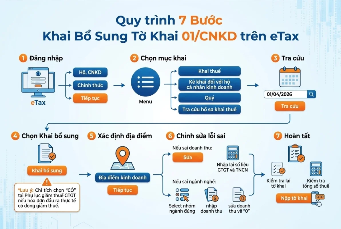 7 Bước khai bổ sung tờ khai 01/CNKD trên eTax